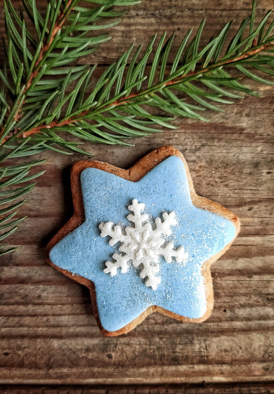 6 perníčků bez zdobení 7cm + 1 zdobený marcipánem a královskou glazurou.